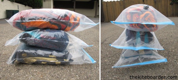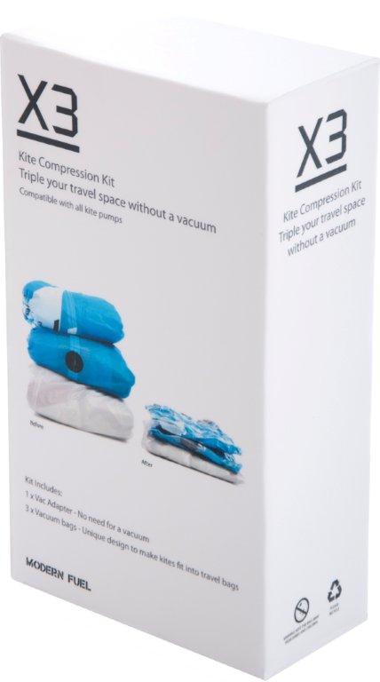 Includes three vacuum bags and a kite pump adapter to shrink your kites for travel. http://modernfuelproducts.com/