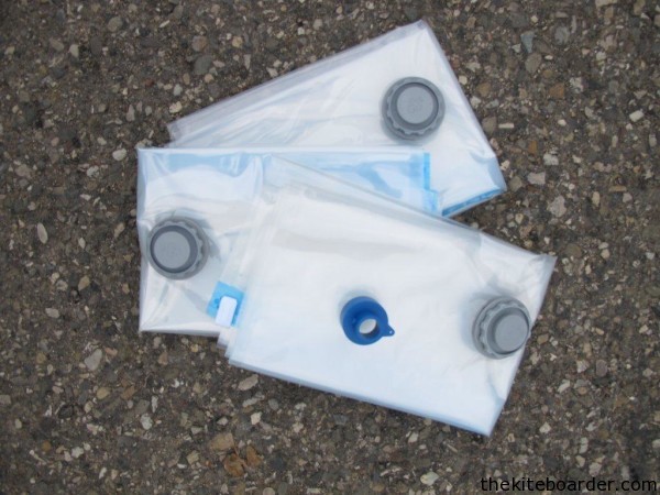 The adapter that comes with the kit allows you to use your kite pump to pump the air out, but you have to hold it against the valve on the bags as it doesn’t fit tightly.