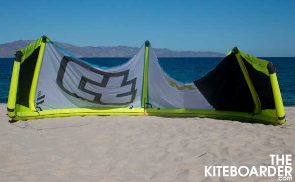 The Tango is a 3-strut medium-low aspect kite that CrazyFly bills as a jack of all trades yet excels in wave riding and wakestyle. The inflation system uses the standard 9mm inflation / 11mm dump valve and solid construction overall. The front bridle has three settings, wave, freeride and wake, which changes the spread of the front bridle; the center freeride position seemed to support the leading edge and get the best feedback. Testers found the kite to have lighter bar pressure, easy relaunch and lots of low end power with average turning and upwind ability. Some testers felt the flying characteristics of the Tango would be improved by increasing the depower/throw length which would give them more range to fully depower and power the kite.