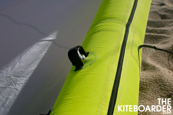 The Tango comes with the Sick bar which comes in fixed lengths (40, 45, 50, or 55cm length) and is built entirely from carbon fiber and is made in the EU. The bar features a plastic push away quick release, above bar Clam Cleat, single center line safety, sliding stopper, comfortable rubber bar ends and an easy to use swivel above the quick release for untwisting center lines. The testers found the stamped grip to have higher density than most and some warned fingers could be pinched at the center of the bar. Some also noted the extra bulk and length of the safety depower line running up the center lines. The chicken loop was easy to reassemble with a guide built into the design, but closing the quick release required some finesse. Overall the bar is lightweight, simple and functional earning praise from our test riders.