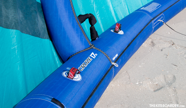 The CrazyFly Cruze is a 5-strut medium aspect kite that exceeded many of our tester’s expectations. The Cruze features the standard 9mm inflation/11mm dump valve, two turning speed attachment settings on the wingtip as well as a non-adjustable front bridle which is fairly long in length. The outboard struts feature an interesting kink near the leading edge, but the most standout feature noted by our testers was the Cruze’s on the water performance. With medium to light bar pressure, the Cruz earned solid praise for its fast turning and upwind performance in all but the lightest conditions. Testers praised the kite’s ability to accelerate as well as its fun and user-friendly boost and hangtime.