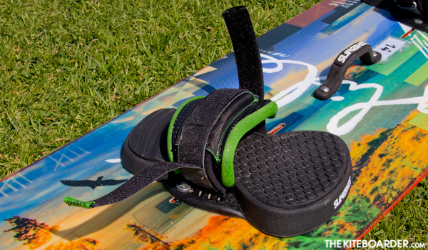 Our test boards were shipped with Slingshot’s Bolt-Ons straps and pad system. The straps slip through the pad base for a simple and easy installation with a single Velcro strap for adjustment. Testers found the medium density pads comfortable while delivering a solid balance between control and plushness.