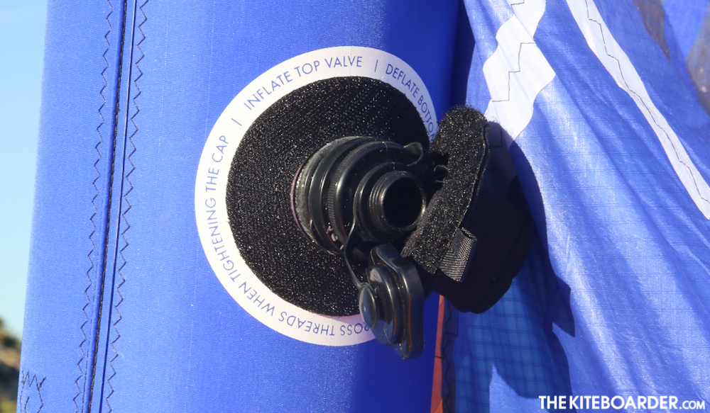 The 2015 Lithium is a 3-strut Delta Hybrid that Airush markets as their all around freeride jack of all trades. This year the Lithium received an updated large flow Boston valve that requires the larger inflation nozzle, medium length 2-setting front bridles with pulleys and 3 wingtip steering settings. The construction is solid with Airush’s Aramid reinforced airframe and Teijin double ripstop canopy. Testers liked the Lithium’s medium bar pressure, good boost and hangtime performance, solid relaunch and all around easy sheeting that our testers felt would work great for beginning to intermediate kiters.