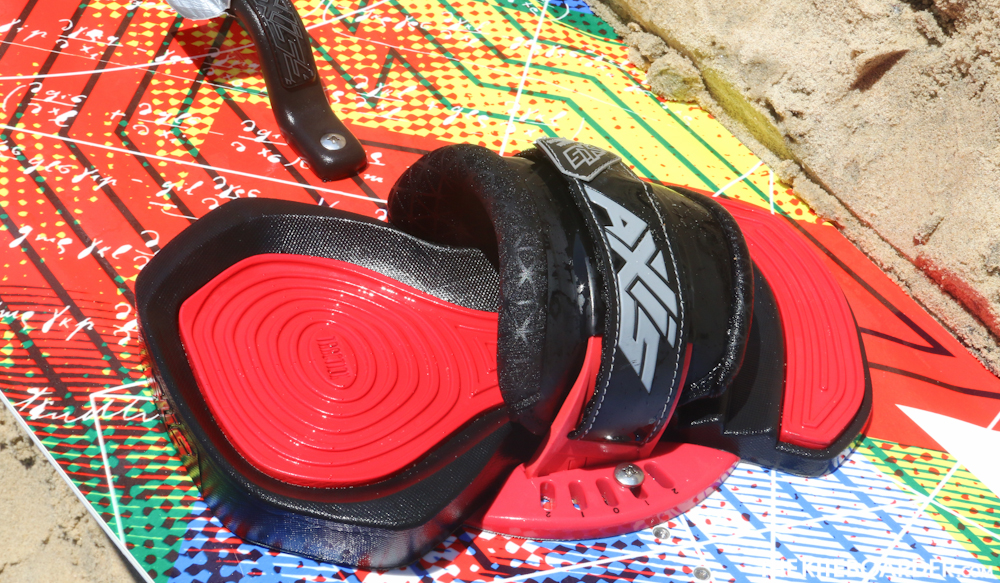 The Division is a great freeride board that features a flatter rocker for going upwind. With a straighter center rail and pulled tips , testers felt it handled well in choppy conditions and felt fast underfoot. The medium flex was lively and forgiving and fun for load and pop. The Axis pads and straps offers three stance width settings and five settings for adjusting duck. The Division came with the single adjustment foot straps that are incredibly easy to assemble but lack the form fitting adjustments of Axis’ quad adjustment strap, and the pads have a soft to medium density comfortable rubber-like footbed with ribs and a ridge under your toes that gives good traction.