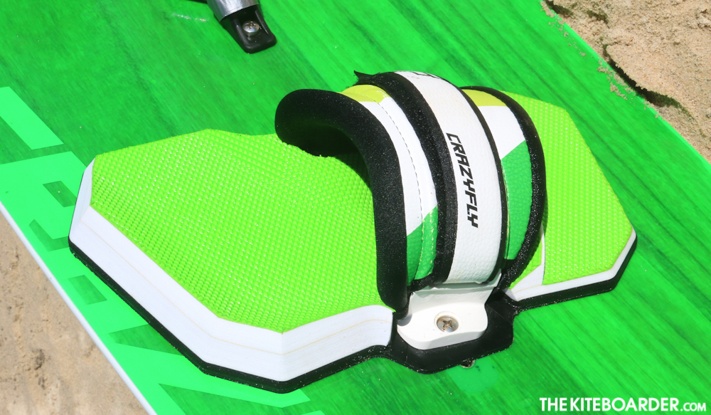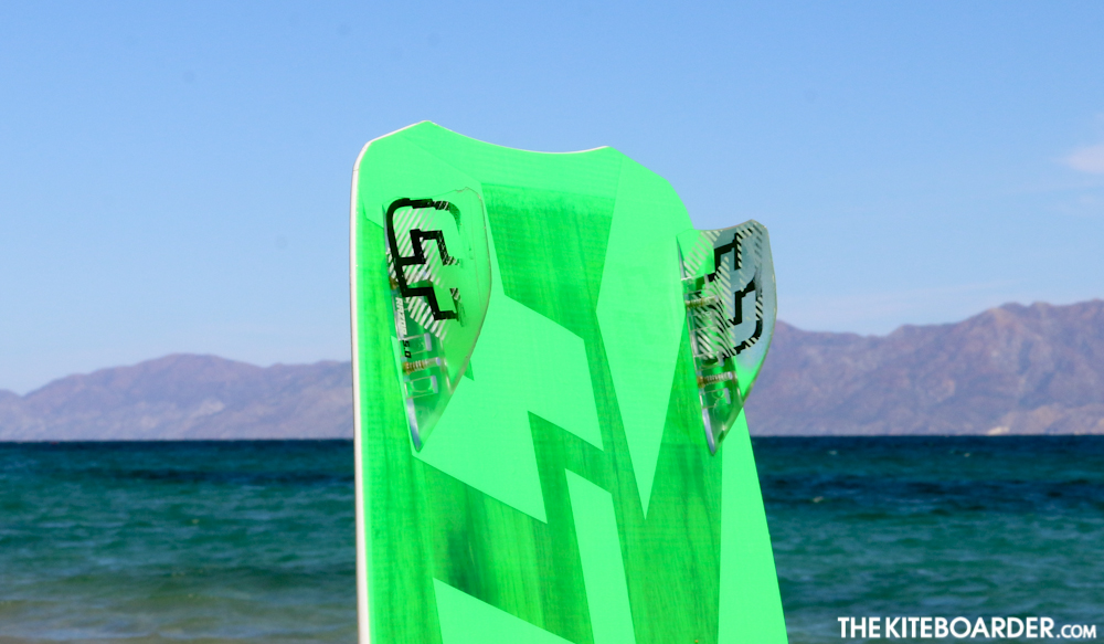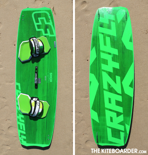 The Shox is one of the few boards on the market that offers environmentally friendly construction with easy-to-use fun freestyle performance. The Shox features a double concave bottom and three inserts for stance width and a single option for duck adjustment. The Shox received high marks for its great locked in feel with solid tracking and easy upwind ability. Testers noted the Shox’s smooth handling of the super choppy conditions and gave the Shox solid points for solid performance in load and pop. Testers liked the plushness of the pads and the pronounced toe ridge for extra grip for aggressive riding and overall, found the pad/straps to be very comfortable.