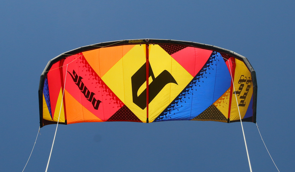 The Fat Lady is back this year with three struts, new attachment points for the leading edge bridle and wingtip profile. The low-end on this kite is among the top in this year’s test while earning high praise for it’s steering speed and upwind ability. The Fat Lady has one of the thinnest diameter leading edge’s in the test and we think this is a large factor in the kite’s surprising performance for such a large size. Despite the reduced diameter leading edge we had no problem relaunching this kite and testers liked the fat lady’s middle of the road big kite bar pressure.