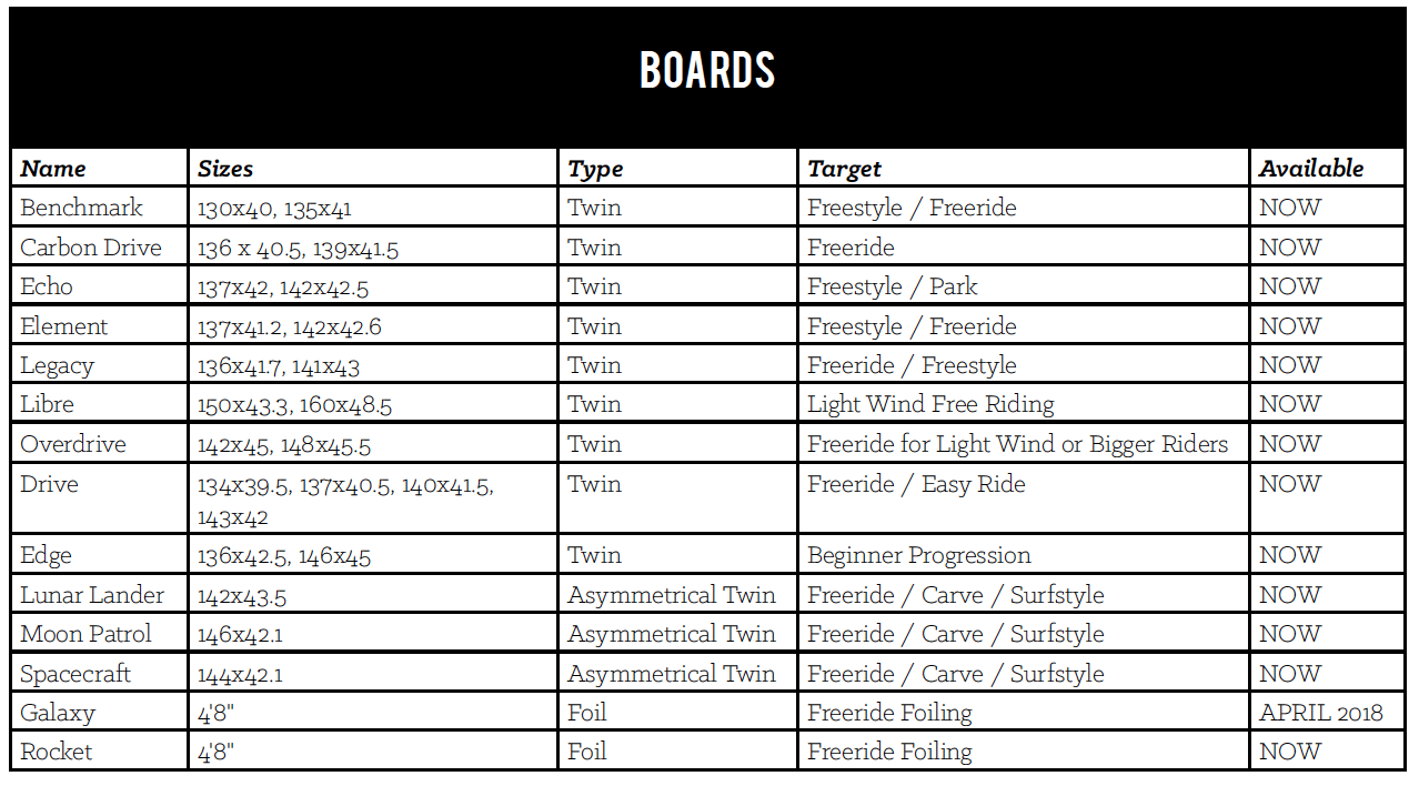 Finally, there are two new boards in the lineup. The new Galaxy as well as a smaller Rocket board, both available in a 4’8” size. The new Galaxy board is a carbon composite construction with a concave top deck. Most of this is available now, but keep your eye out for the Impulse wings and Galaxy boards coming to your local retailer in early 2018.