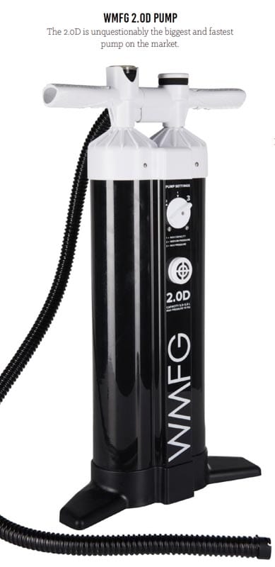 flies. It was 2016 when the 1.0T launched, followed by the 2.0T this year and there will be a third generation 3.0T in early 2018. There are lots of very similar pumps on the market but what WMFG delivers is a pump with the greatest range of kite-fit, premium parts and features. Compared to other brands, WMFG pumps have the most nozzles, the best hose, and some extra parts. The new 3.0T will continue to deliver on this and offer some upgrades over the 2.0T.