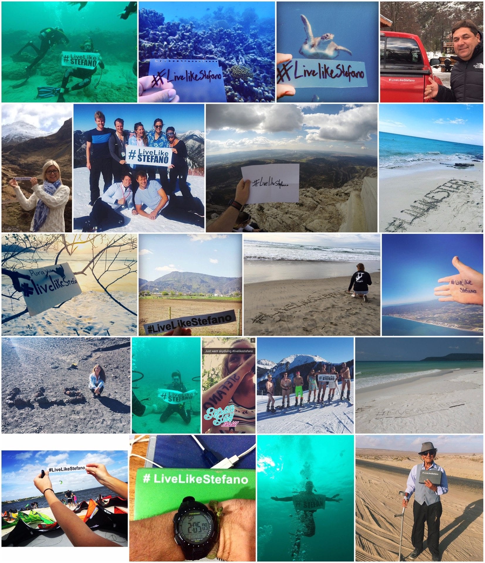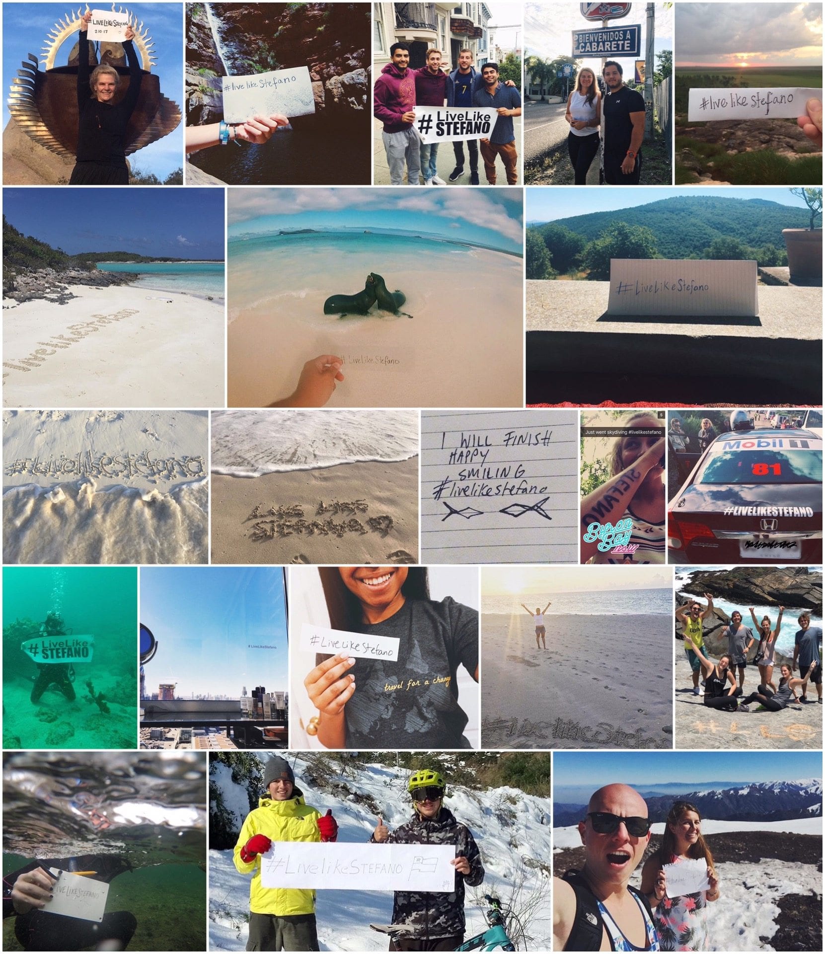 *- #livelikestefano has appeared in pictures: Chile, Brazil, Thailand, The Galapagos Islands, Belize, the Bahamas, Turcs and Caicos, United States- Miami, New York, New Mexico, San Diego, Austin, Vail, San Francisco, Hawaii, Italy, Dominican Republic, Spain, South Korea, Australia, Iceland, Colombia, Costa Rica, France, Barbados, Puerto Rico, Western Cape of Africa, Atacama Desert in Chile. And the list continues..
