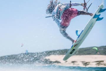 F-One’s Charlotte Consorti shows you Fuerteventura, an island located in the Atlantic Ocean just in front of Morocco. It is an ideal destination for kites with a mild climate throughout the year and perfect conditions for wave, freeride, freestyle or foil. For beginners you have the choice because it has plenty of kite schools! And for days without wind or those who do not want to kite, you can go for a walk through the volcanoes or visit picturesque villages,go surf or paddle, horseback riding, mountain biking, tax-free shopping, or simply lazing on the beach protected from the wind by the famous Corralitos (small stone wall) WInd is perfect from April to late August! From September to March is the month for waves but you can also have a whole week without wind, the best is to go at the last moment by checking the wind forecast! The island can be divided into two parts: the region of Corralejo in the North where are most of the wave spots (El Cotillo, Majanicho, glass beach, Puerto Lajas …) and the south more arid and flatter, especially the lagoon of Sotavento where the wind accelerates thanks to a venturi effect.