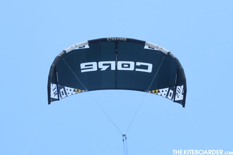 The Nexus came with the Sensor 2S bar which is a dual adjustable length bar (46/52 cm) that comes equipped with a double PU-coated spectra sheeting/throw line, replaceable plastic insert, no sliding stopper and a non-removable donkey dick. This year the bar features a single center-line safety depower with a high V and an above bar depower custom Clamcleat with a Velcro tuning handle to keep the depower control toggle from tangling. Core bars have long been known for their twisting quick release with auto swivel (S-System) that doubles as a quick release guard and integrates ceramic bearings for longevity. The length of sheeting/throw can be adjusted for varying arm lengths of kiters or the type of riding. The non-molded foam floats are connected to the bar ends with the tips of the bar being hard. While the outside leader lines allow riders to adjust the length of the outside lines for stretch or tuning, the bar ends are easily swapped between by 46/52cm by changing to a separate knot on the bar end. We love the bar’s simplicity with its medium plush stamped grip, its fairly narrow diameter and its small but sufficient bar end winders with non-retractable bungee. The Sensor 2S is an amazingly feature rich bar designed into a compact and lightweight package.