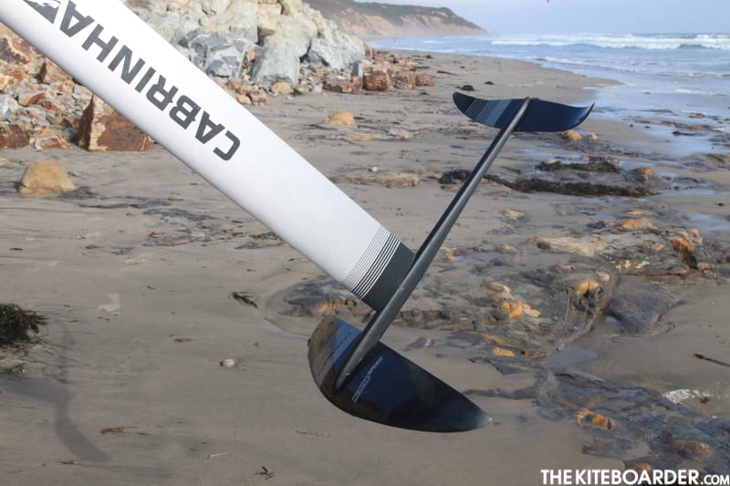 This year the Cabrinha foilboarding program got a significant upgrade with two new wings based on the new Hi-Rise foil platform, the fast wing labeled Speed and the freeride carving called the Lift. This year’s design features a wider aluminum mast and a tapered aluminum fuselage with really solid construction that bolts together with a single size allen wrench, making assembly super easy and reliable with one tool. The Hi-Rise Speed is a straightforward set it and forget it type of wing with no shims or variable settings for lift. Cabrinha’s mast plate is designed both to with boards that feature track mounting systems as well as boards with a single setting board that bolt through the deck of the board. The baseplate is machined out so it has less aluminum and likely is a bit lighter in the weight department which shows because the weight isn’t bad on this for a foil with the durability of metal spars and carbon wings. In terms of speed this is obviously a higher aspect, faster wing that requires a bit more board speed before the Speed wing starts to bump into lift mode. It’s not the fastest foilup speed in the test, but you definitely need more speed than the Lift wing set. In terms of input/reactivity, the Speed is fairly active on the pitch and roll axis while a little more stable on the directional yaw axis. The Speed makes for a really fun carvy ride rail to rail; pitch control takes a little bit more adjustment coming from lower aspect foils that tend to be a little bit slower in that area.