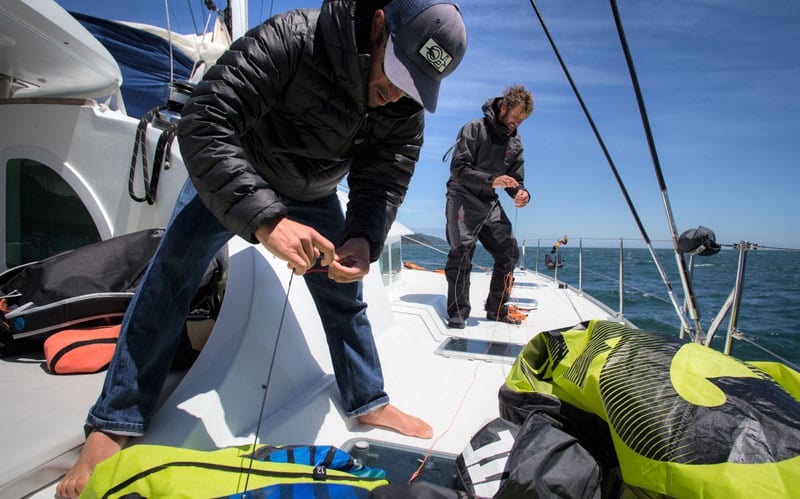 Fletcher aboard the Cabrinha Quest with Jason Slezak in search of world class kitesurfing conditions and adventure. // Photo Jody MacDonald