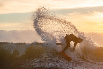 Jason Slezak had been trying to get me to foilboard with a kite for years, but I just wasn’t interested in mowing the lawn. Then I started screwing around with a kite and a foil as a means to surf foiling. I got pretty turned on; it just clicked with a kite. But this is illustrative of the number one thing I love about kiteboarding; it can be used in so many different applications. The kite is just a method of power—you can surf, foil, wakeboard, snowboard or use it as a means of transportation to access remote areas—you could even use the kite for . . . [pause] snorkeling at speed—it’s endless. Getting better at foilboarding has been my latest obsession; I’ve always been trying to surf waves better and harder. It used to be that I was trying to kite waves as well as I can surf. Now I can kite waves much better than I can surf—I’m constantly trying to ratchet that all up and I guess that’s probably the obsession.