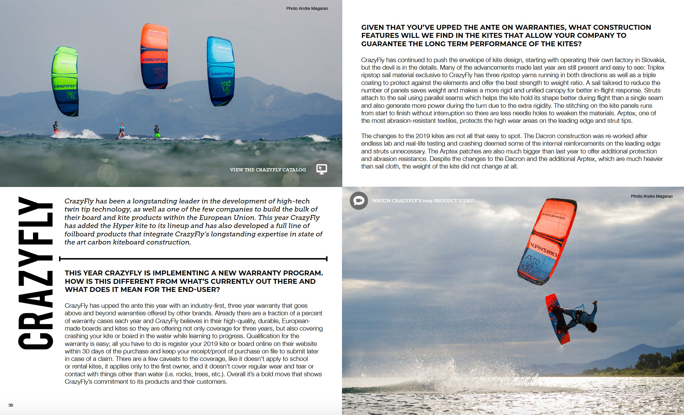 CrazyFly has upped the ante this year with an industry-first, three-year warranty that goes above and beyond warranties offered by other brands. Already there are a fraction of a percent of warranty cases each year and CrazyFly believes in their high-quality, durable, European-made boards and kites so they are offering not only coverage for three years, but also covering crashing your kite or board in the water while learning to progress. Qualification for the warranty is easy; all you have to do is register your 2019 kite or board online on their website within 30 days of the purchase and keep your receipt/proof of purchase on file to submit later in case of a claim. There are a few caveats to the coverage, like it doesn’t apply to school or rental kites, it applies only to the first owner, and it doesn’t cover regular wear and tear or contact with things other than water (i.e. rocks, trees, etc.). Overall it’s a bold move that shows CrazyFly’s commitment to its products and their customers.