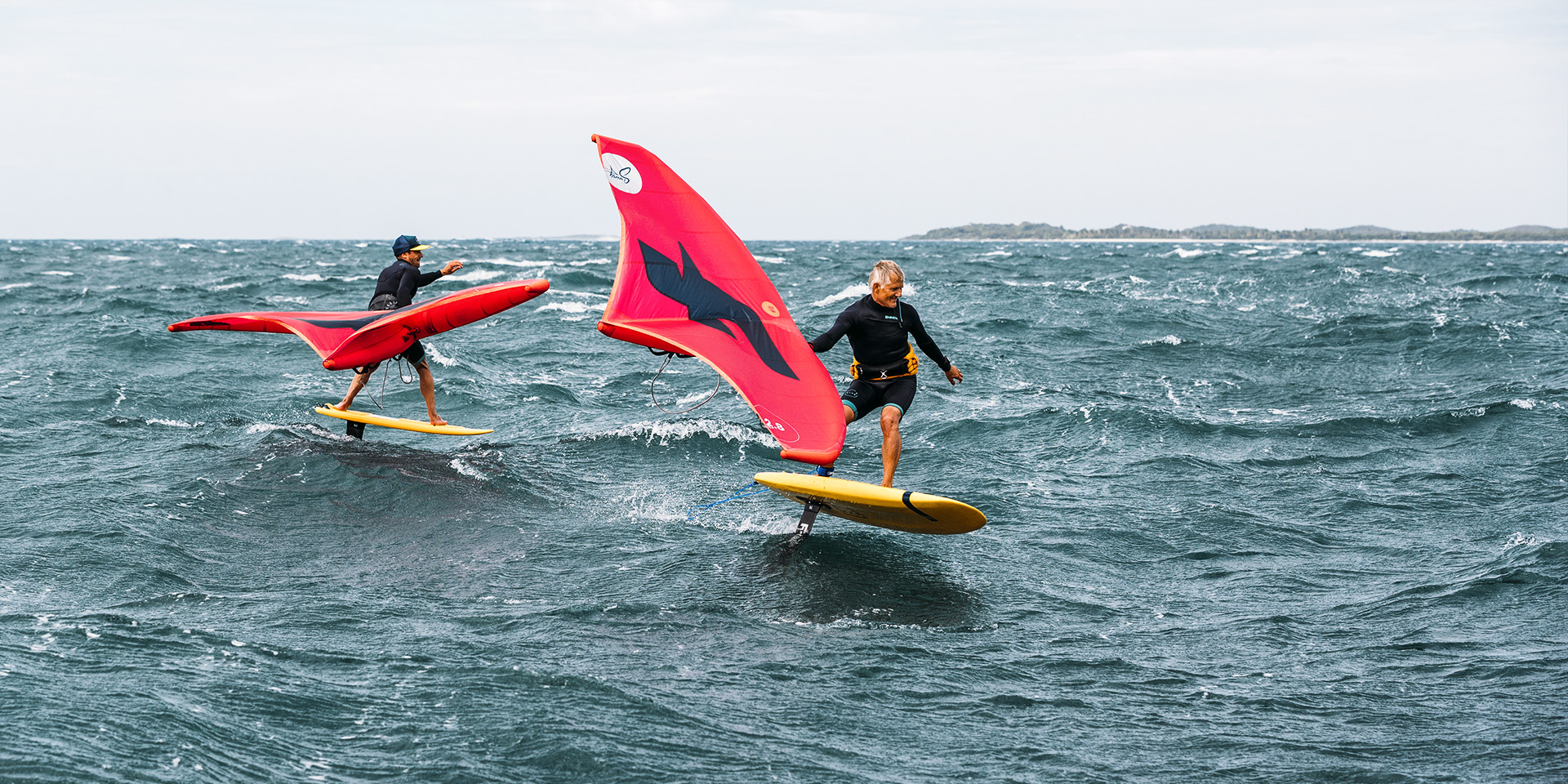 At the end of the outer reef run, we have to turn the corner and wing our way back upwind to our home island. It’s at this point that I learn the biggest downside to wing surfing on low volume boards. Wind strength is incredibly important when riding low volume sinker boards. Without the flotation, you have to use the sheer power of the wing to bring your body weight and the board out of the water. Once the board has been brought up to the surface, pumping the board is enough to release surface tension and achieve foil up speed, but if the wind drops below a threshold for your wing size, the wing can’t lift your body weight, and in that scenario, you end up submerged at chest level, balancing your board underneath you, eagerly waiting for the next gust. I was lucky, I always found that next gust and made it back up wind, but with that in mind I think for those first sinker sessions you really need a solid bail-out plan-B, or a good rescue option.