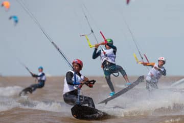 By choosing the Ozone Edge V10 — flown on 13m lines with 4m and 7m extensions available to adjust to competitors weight and wind conditions — and the Moses foil and board combination, all the young Arrows Class athletes of all sizes and weights will be competing on identical, “one-design” equipment, racing on windward-leeward courses just slightly shorter than Formula Kite tracks.