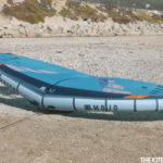 The Mojo brings a fresh look to the wing market with a sail plan that puts more surface area up front along a wider wingspan with a tapered leach towards the boom strut. You get three separate window panes on each side of the wing that does a great job of keeping weight down while giving you enough visual awareness of your blind spot. The Mojo uses a bit larger diameter leading edge and boom strut to deliver extra rigidity to the design and does away with the distribution hoses to solve the slow deflation problems experienced with other wings. By using two push-button inflation valves to inflate the boom and leading edge separately, you get extra rigid spars for better performance. The boom comes with three handles down the center; each handle uses a shallow but wide stance with unique scalloped padding built into the handles. The boom comes with attachment points for a harness line if you choose so and two extra leading edge handles in addition to the hover handle, both of which are helpful for maneuvering the wing on land and before you waterstart in the water. The leash was a thin bungee-style spectra rope that had some extra length for easy clearing of the wing on water relaunches and behind the back pass tacks. The wrist leash uses the closed-loop cinch with Velcro and soft EVA that was both comfortable and easy to slip on and tension with one free hand. There’s a ton of innovative design features, like the boom that integrates Dacron and ripstop, we assume to shave off some extra weight.