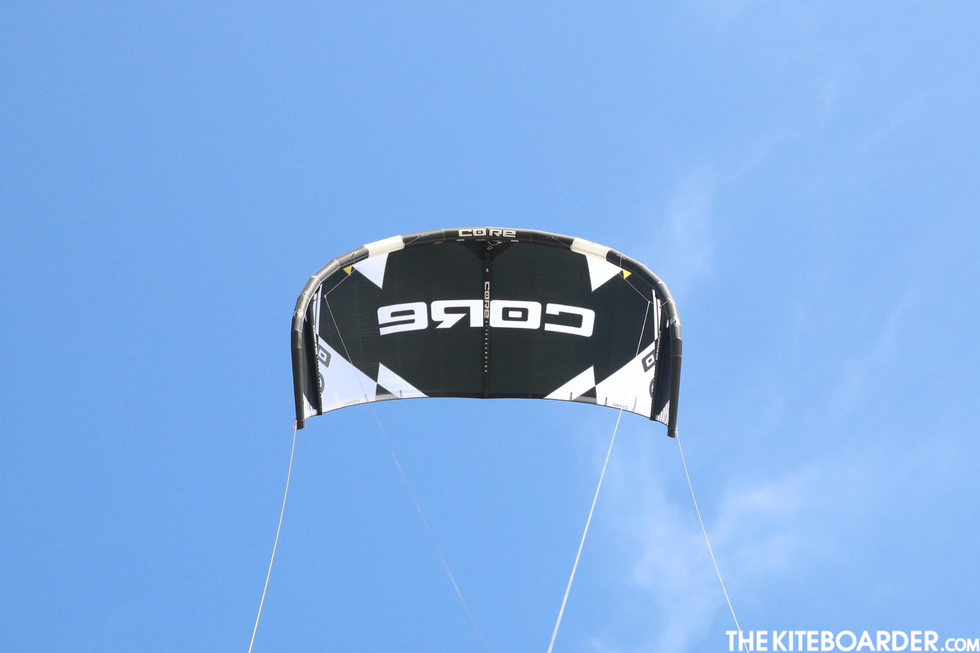 Right out of the gate, we noticed the Section’s medium bar pressure which contrasts against the feel of the XLite and XR series of kites in Core’s lineup. It feels like you get more power delivery in a smaller bar movement within the throw, but the turning response and steering initiation feel crisp and fast. The Section in its universal mode seems to want a little more active kite flying to line up the power with movement through the window, but without moving the front bridle CIT settings you get an excellent balance between depower and pull, both of which can be dialed in with the three settings on the leading edge bridle. We found the onshore setting to work better for park and ride style surfing where the kite sits deeper. The offshore setting put the kite a bit farther forward in the window with more progressive sheeting that offered faster access to depower, and this seemed to work better for more active wave riding with the kite flying across the window. The steering response is in tune with dedicated wave riders’ needs and offers snappy steering initiation, because turning is everything for surf. The Section offers a fairly tight turning arc and delivers in the drift department, reliably sucking up line slack as we carved down the line.