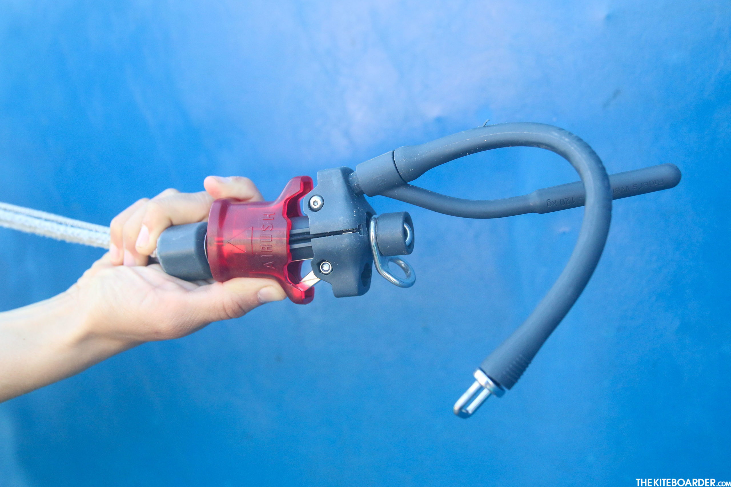 The Ride is a fixed length bar that you can buy in either a 50 or 60cm length and comes with 24m lines (9+14m lines and 1m leaders) with the center lines ending in knots and the outside lines ending in lark’s head loops. The safety system is a single center-line depower that travels through a low-v split and along with the throw line to the quick release. The throw line is spectra with an adjustable length throw. The quick release features a push-away quick release with a larger hand swivel on top that also acts as a quick-release travel guard. The hand swivel features a larger diameter for better leverage when untwisting the front lines and has a smooth swivel action. The newly designed push-away quick release features a new cocking mechanism that leaves the quick release handle cocked open upon release. The reset is straightforward; just insert the open end of the loop back into the release and the QR handle springs shut. The power tuning happens via a Clam cleat with a plastic toggle for easy adjustment. There’s a stamped logo on the insert that tells you when you are holding the bar the right