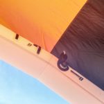At first look, the UFO is out of this world with its fatter diameter leading edge, wingtips and completely uninterrupted canopy that skips struts altogether combined with its overall super low-aspect canopy shape. The UFO uses a single setting fixed front bridle that doesn’t use any pulleys to help the kite change its angle of attack. The front bridle pigtail attachments end in a lark’s head loop and the wingtips ends in knots. The wingtip offers a single attachment point so you don’t have any tuning options, but with that tradeoff, you get an airframe that has shaved off every ounce of unnecessary weight. The trailing edge uses some flexible corded battens and patches to help maintain leech stability.