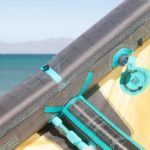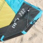 Sporting Duotone’s large diameter inflation valve dubbed the ”˜Max Flow’ system which connects directly with Duotone’s pump hose without the use of a nozzle; the inflation system’s twist valve rotates with the insertion of the hose to keep air locked in the kite. Deflation can happen through both the inflation valve and a dump valve on one side of the kite, making both inflation and deflation quick and easy. For a couple of seasons, the Evo has sported a single setting fixed bridle that has eliminated the use of pulleys. The leading-edge bridle ends in knots and the wingtip attachment ends in loops. The wingtip offers three attachment points labeled ”˜soft, medium and hard.’ The factory setting is on the middle ”˜Medium’ while the ”˜soft’ is recommended for surf/foiling and the ”˜hard’ setting is recommended for freestyle. The trailing edge utilizes three rod battens and a slim strip of reinforcement to maintain leach stability.