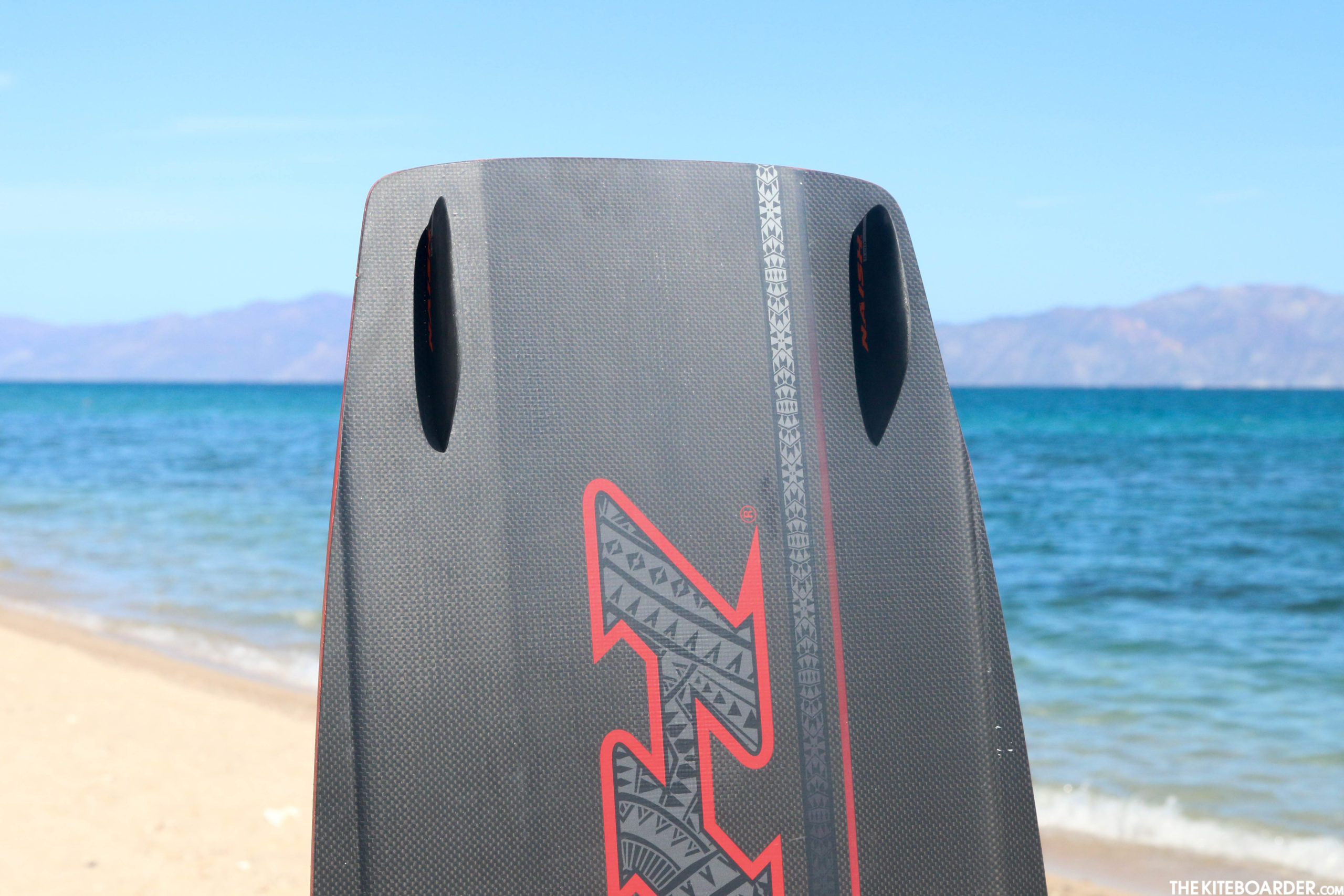 The Drive is designed with the same bottom shape as the Motion. It has a triple concave bottom with a short bevel/channel along the rail and comes with 5cm Naish fins and three inserts for adjusting stance width that are centerline mounted. Its slick carbon construction makes it an incredibly lightweight board that’s apparent from the moment you pick it up off the beach. The Drive feels really fast through the water with a solid locked-in feel that gives you a lots of grip from the bottom channeling combined with the medium-sized fins. Designed with careful attention to its lower weight, the Drive feels active and responsive to all your inputs.