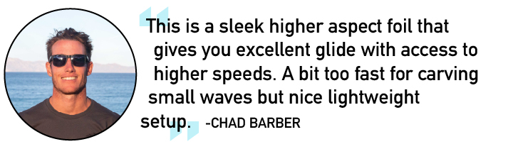 The Kite 810 impressed us with a much easier foil-up than we expected. Looking at the 810’s sleek shape, we were anticipating a faster foil-up speed, but the 810 started creating lift earlier than we expected which allowed for easy take-off at a moderate speed that seemed accessible in lighter wind conditions for riders of most skill levels. Like many of the Naish foils, the balance between front foot and back foot pressure is even and allows you to hit higher speeds with a relaxed riding stance.