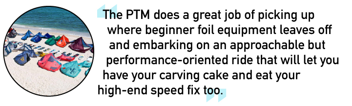 The carbon mast and keyed fuselage does a great job of transferring your inputs directly into the foil with a really crisp reaction to big aggressive carves. One of the elements that stuck out was the difference between foil-down speed and top-end speed. The foil-down speed was just slow enough that we could stall, fade and really square up with waves for super fun carving, yet, at the same time, the PTM loved to accelerate, showing off its acceleration and willingness to hit some exciting high speeds that really demonstrated the PTM’s versatility. The extra active roll axis was really fun for rail to rail carves, yet never crossed the line into twitchy or uncomfortable territory. In that regard, the PTM does a great job of picking up where beginner foil equipment leaves off and embarking on an approachable but performance-oriented ride that will let you have your carving cake and eat your high-end speed fix too.
