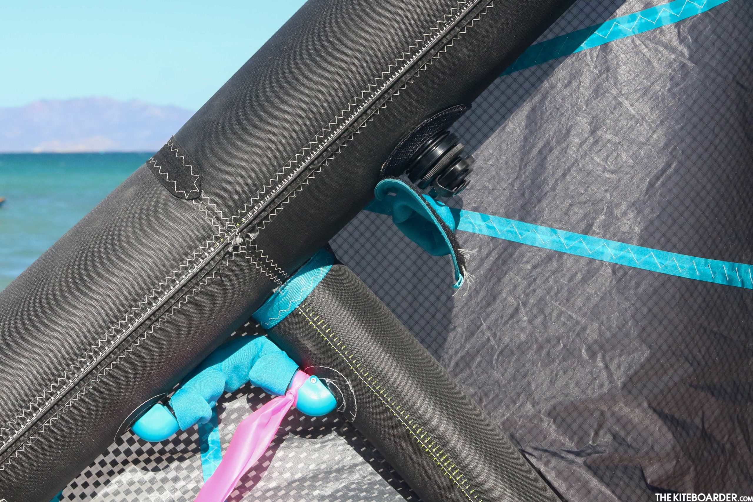 The Ultra Team still inflates with a large diameter Boston valve that requires the standard hose attachment for quick and easy inflation and deflation. If you seat the hose sufficiently into the valve it will remain connected through high-pressure inflation, and deflation is super-fast when you unscrew the valve and let the air out completely unimpeded. The front bridle attachment points end with lark’s head loops while the wingtip pigtail ends in three knots for riders to choose outside line length and tuning.